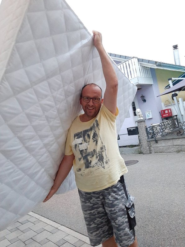 Danke. Die Matratze war exakt vor der Türe. Da auf dem Schreiben stand ich müsse unterschreiben und ich das letzte mal auch unterschrieb. Hatte ich nicht mit so einer freundlichen Lieferperson gerechnet die sogar bedenkt, dass 6 uhr super früh ist und sie mich nicht wecken wollte. Einen herzlichen Gruss und vielen Dank an die Person. Der Lieferant kam sicher vor 6 Uhr. Jedenfalls danke, dass mein Sohn und ich nun endlich in einem Bett mit Matraze schlafen können.*