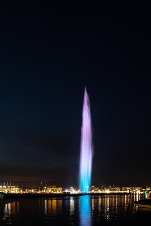 Der Jet d'eau leuchtet für Menschen in Not